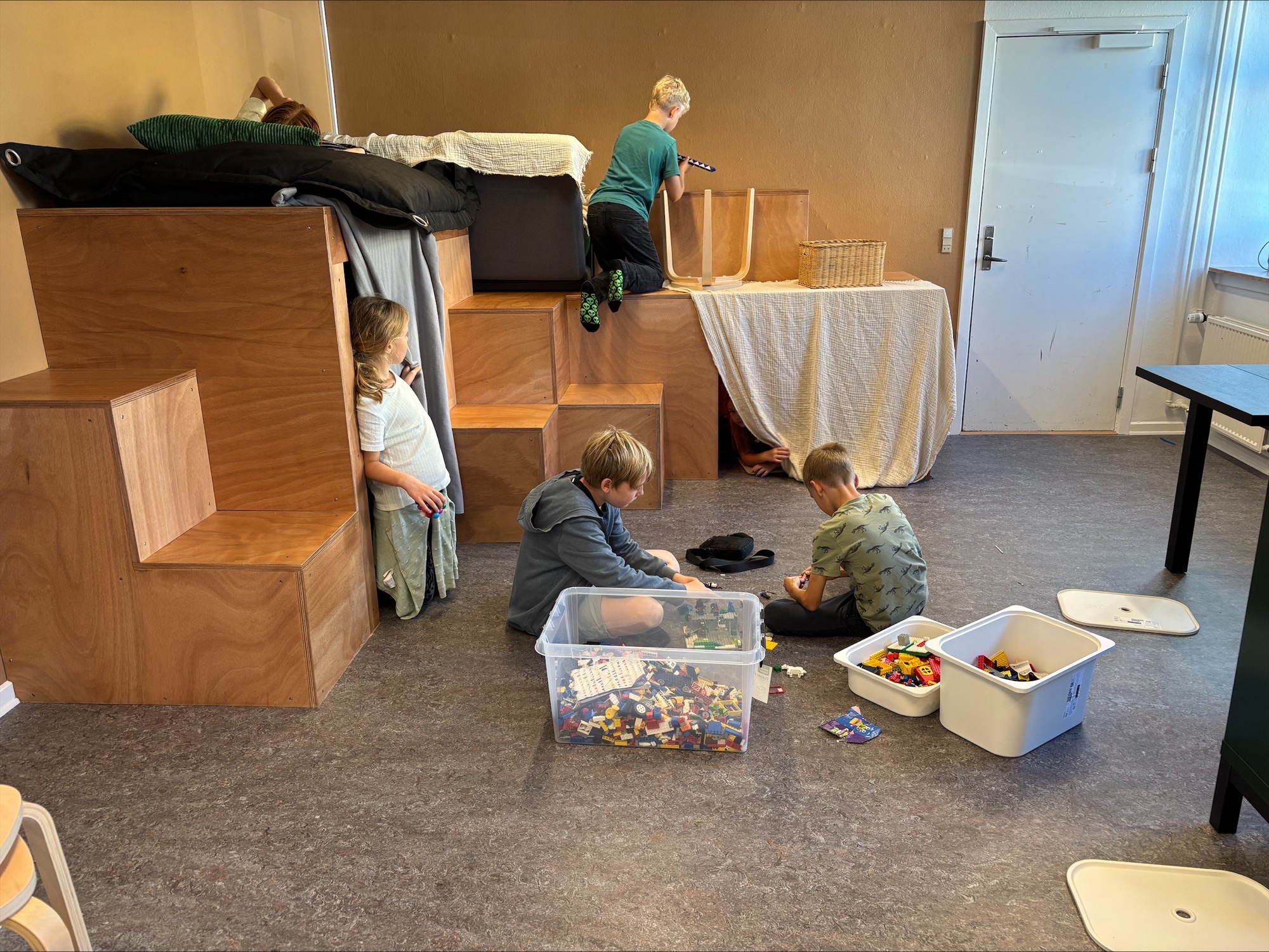 Vores Multirum er også i gang med at blive renoveret. Her har vi fået malet, lagt nyt gulv og vi er i gang med at indrette. Vi har lige fået bygget et multimøbel med huler og forskellige niveauer.